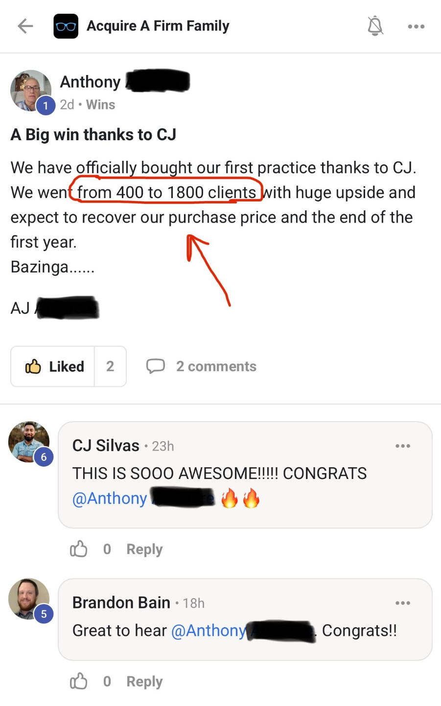 No M&A background. No fancy connections. He joined the community, followed the process, and now owns a firm generating $12K–$15K/month in free cash flow (after debt service).